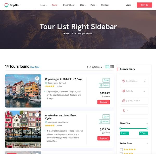 Tour Left Sidebar